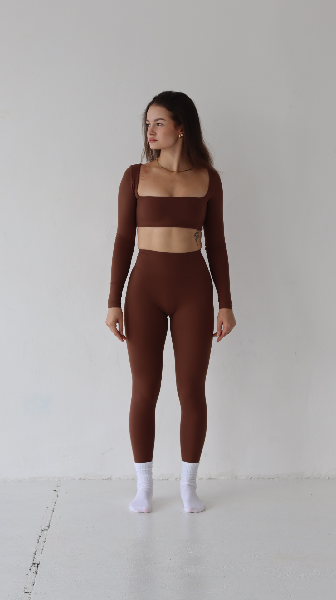 Legginsy o podwyższonym stanie, stworzone z wysokogatunkowej mieszanki 78% nylonu i 22% elastanu, zapewniają idealne dopasowanie, wsparcie i pełną swobodę ruchu. Gładka, jedwabista w dotyku tkanina delikatnie otula ciało, modelując sylwetkę i podkreślając linię nóg oraz talii. Elastyczny materiał pracuje razem z Tobą, zachowując kształt nawet po wielu praniach. Zaprojektowane, by łączyć wygodę z elegancją — perfekcyjne do pilatesu, jogi, spacerów i codziennych stylizacji.